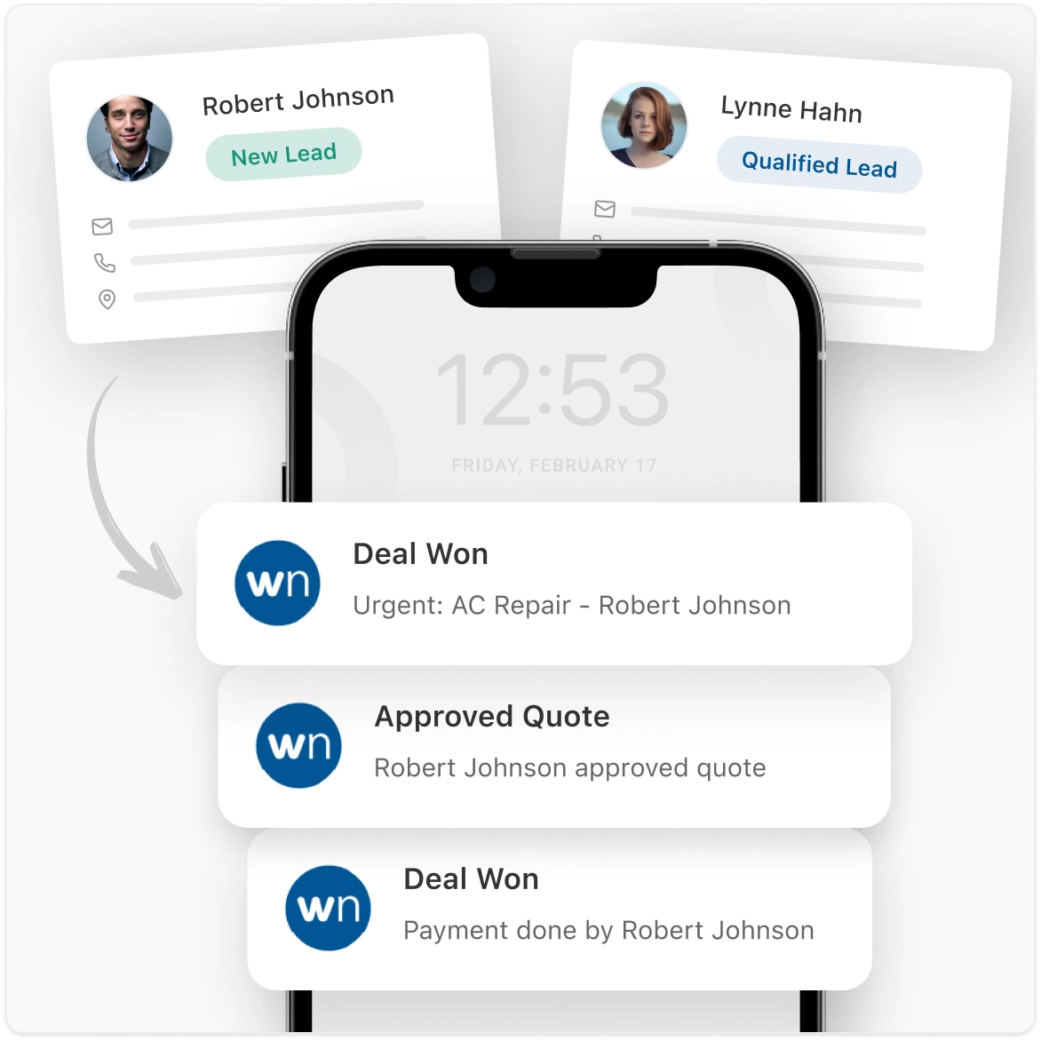 Turn inquiries—and existing customers—into ongoing revenue. Automatically track new leads, repeat customer requests, and upsell opportunities in one organized sales pipeline. Ensure your team follows up quickly and converts more work from your loyal customer base.