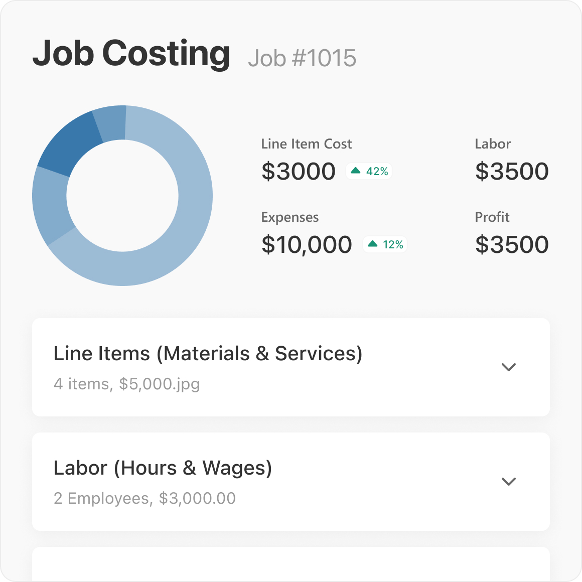Real-time job cost breakdowns for materials, labor, and overhead
