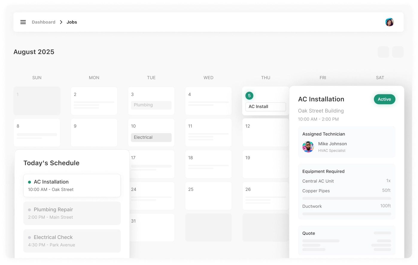 This is your command center. Get a complete, bird’s-eye view of all your jobs, schedules, and team assignments in one organized calendar.