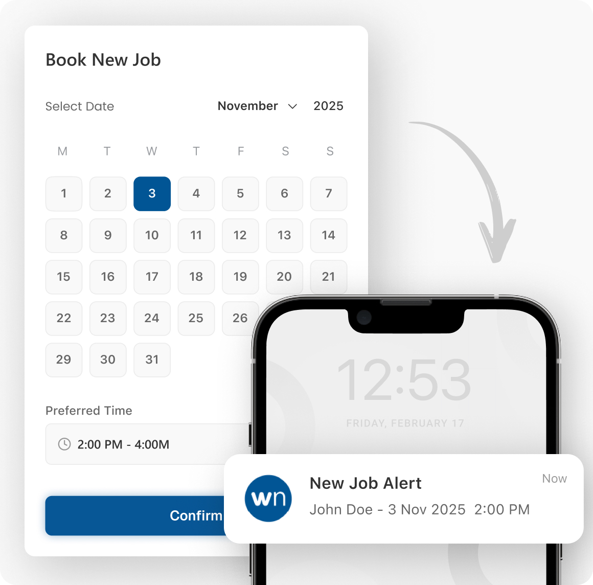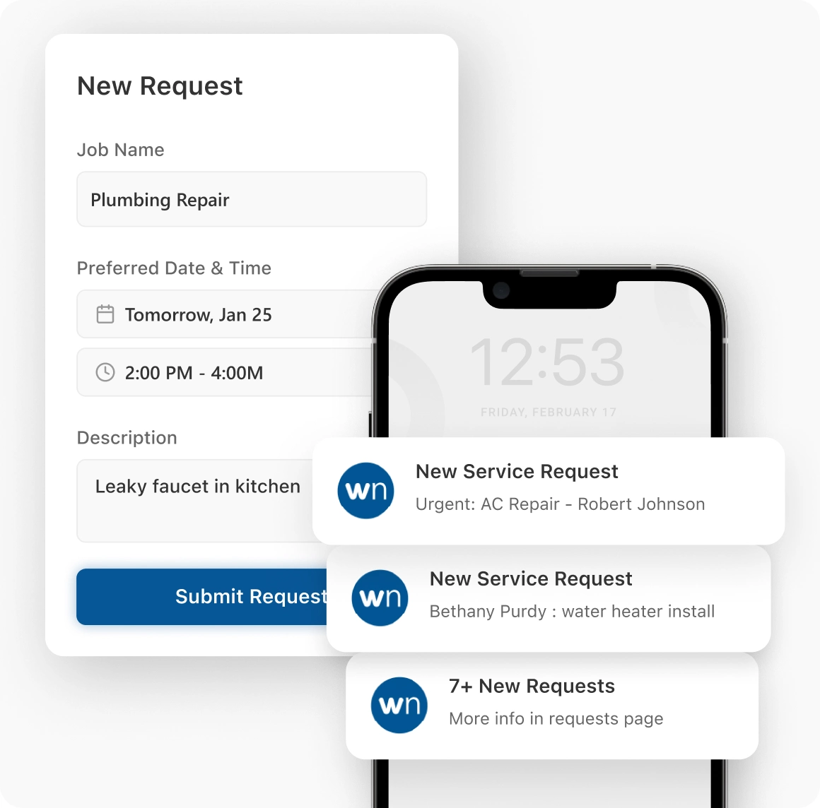 Give your customers the freedom to book services whenever it’s convenient for them. Embed online scheduling directly into your website so clients can request appointments, share job details, and instantly appear on your calendar — no calls, no back-and-forth.