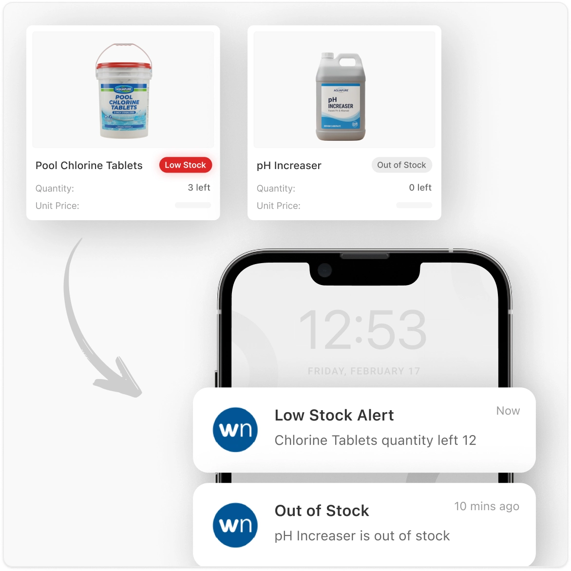 No more guessing what’s left in the truck or storeroom. WIZniche’s built-in inventory tracking makes it easy to record chemical usage, monitor stock levels, and get automatic alerts when it’s time to reorder keeping your pools balanced and your business efficient.