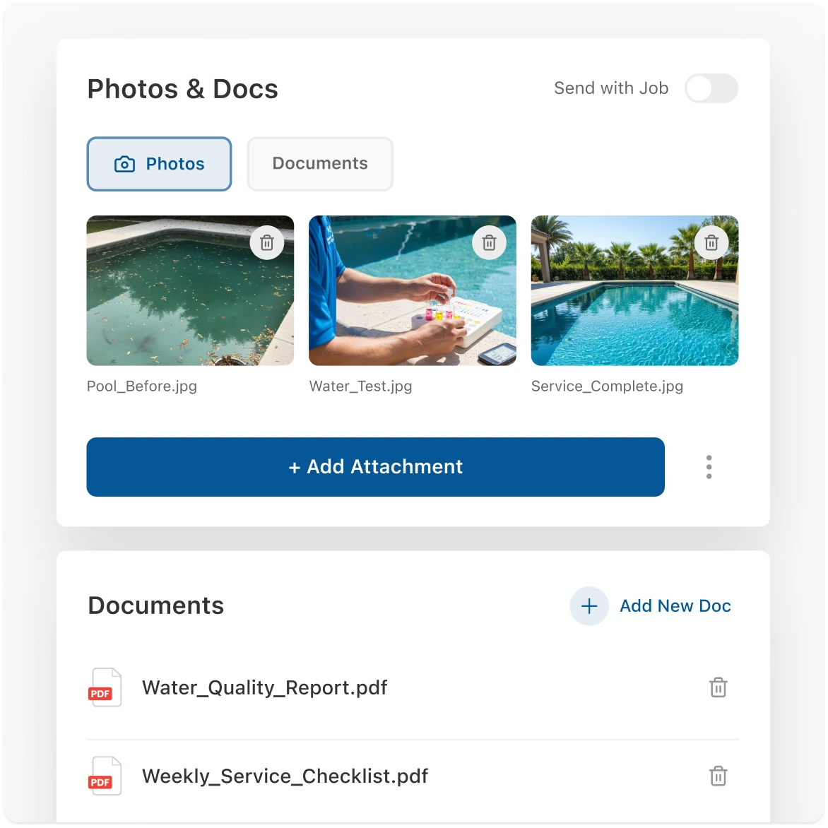 Give your clients confidence and transparency with digital proof of service. WIZniche lets technicians capture before-and-after photos, log chemical readings, and automatically share reports — so customers can see the quality you deliver every visit.