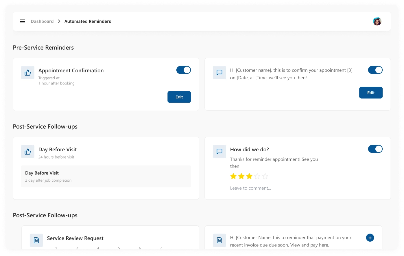 Request reviews and feedback post-service